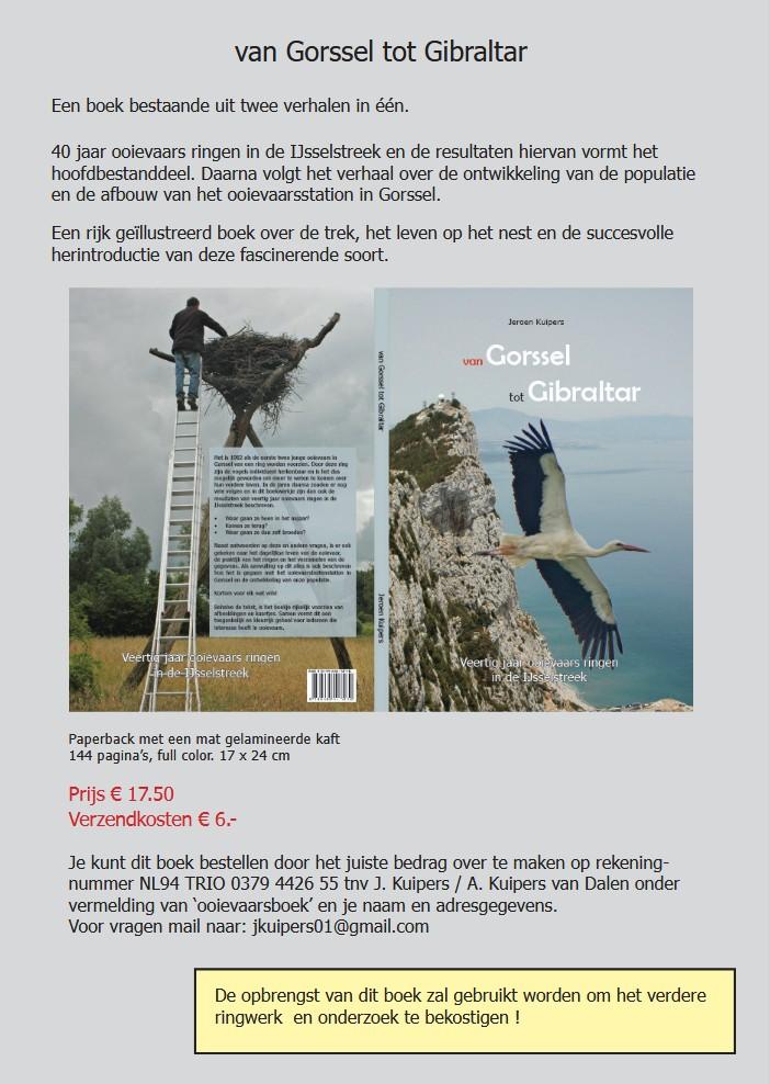 Recent verscheen de publicatie Van Gorssel tot Gibraltar – veertig jaar Ooievaars ringen. Jeroen Kuipers schreef dit rijk geïllustreerd boek over de trek, het leven op het nest en de succesvolle herintroductie van deze fascinerende soort. De publicatie werd mede mogelijk gemaakt door een bijdrage van het Rob Goldbach Publicatie Fonds van Sovon.