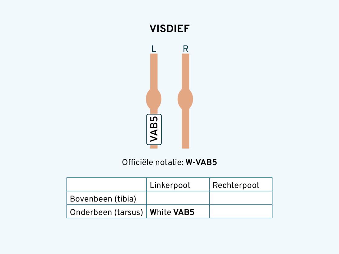 - Noteer de ringen in deze volgorde: eerst de linkerpoot, van boven naar beneden. Daarna de rechterpoot, van boven naar beneden.